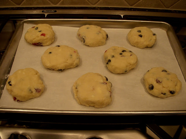 These are officially my favorite scones in the whole wide world! Last time we made them with all dried cranberries, so this time we tried them with half dried blueberries. We actually prefer them with only cranberries….the blueberries are almost too strong. This is from “Once Upon a Tart…” Cookbook from the Once Upon a Tart… cafe and bakery in New York City.