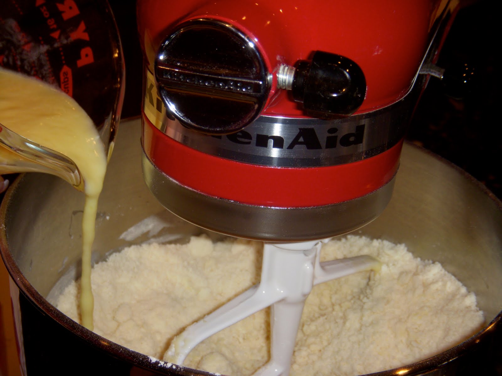 2. Dump the dry ingredients into the bowl all at once, and run the electric mixer on low for 15 seconds.