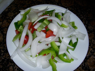 1. Chop onion and bell peppers into thick slices.