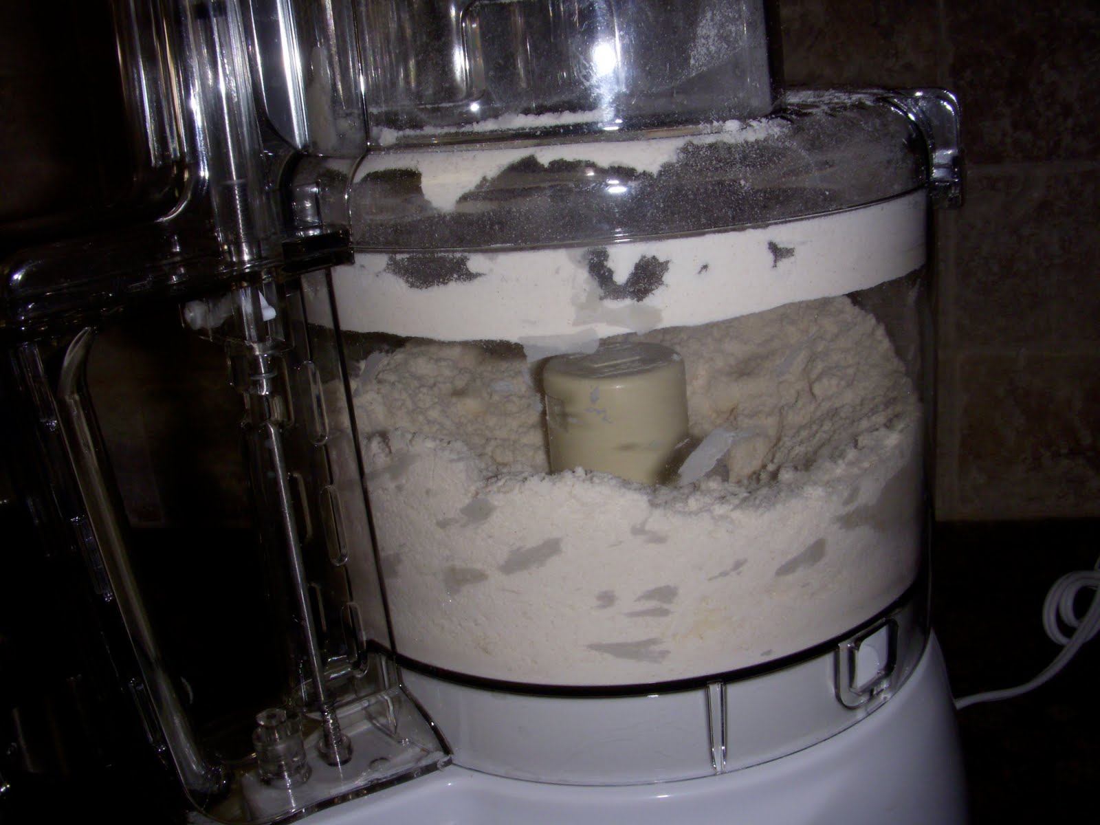 3. Pour the egg mixture into the flour mixture and process just until the dough comes together.