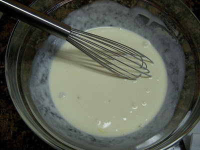 6. In a large measuring bowl, whisk together the egg, cream, mustard, 1/2 tsp salt, and a pinch of pepper.