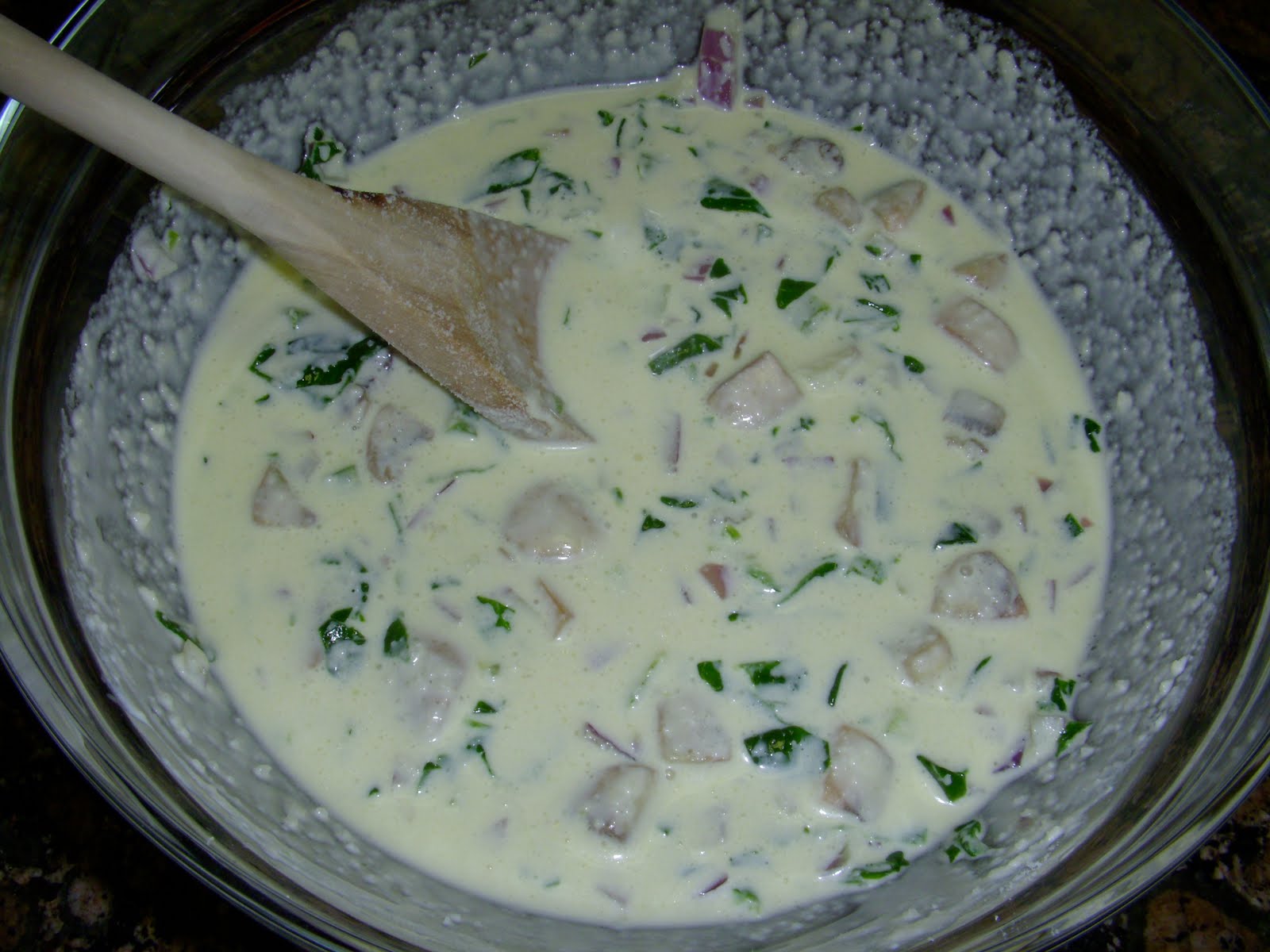 7. Add the spinach mixture, bell pepper, and cheese, and stir to combine.