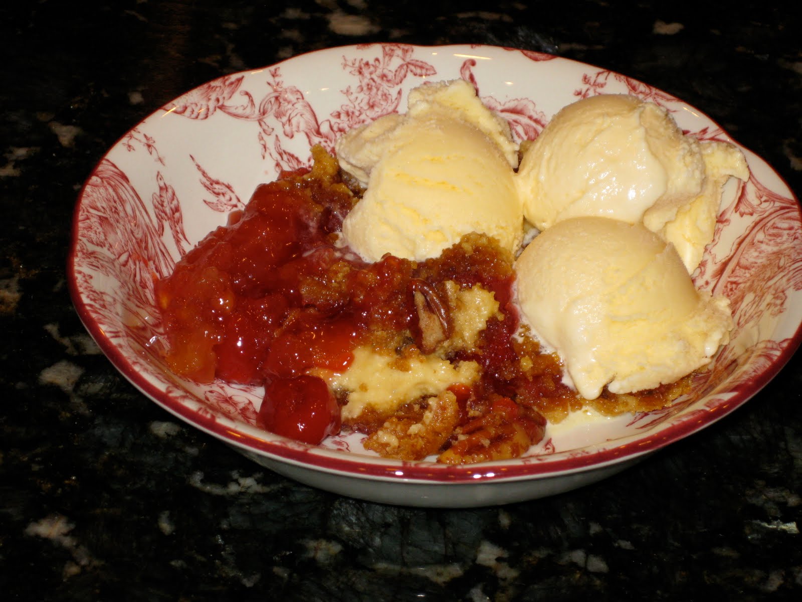 We have not made this dessert in over 6 years and I don’t know why its been so long! It was one of my grandfather’s favorite desserts and we thought of him as we made it tonight. It comes from “The Dove’s Nest Restaurant” cookbook, which has recipes from many historic Texas towns. “Dump Cake” is another name for this Cherry Pineapple Pecan Cobbler since it involves just “dumping” canned fruit, cherries, and cake mix into this cobbler. Super easy, super delicious!