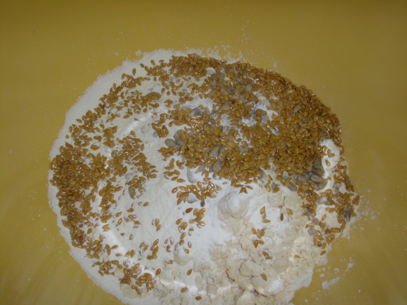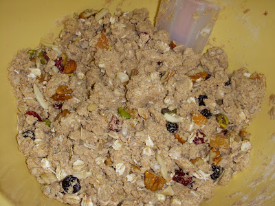 2. In a medium bowl, combine the rolled oats, oat flour, cinnamon, protein powder, dry milk powder, and seeds.