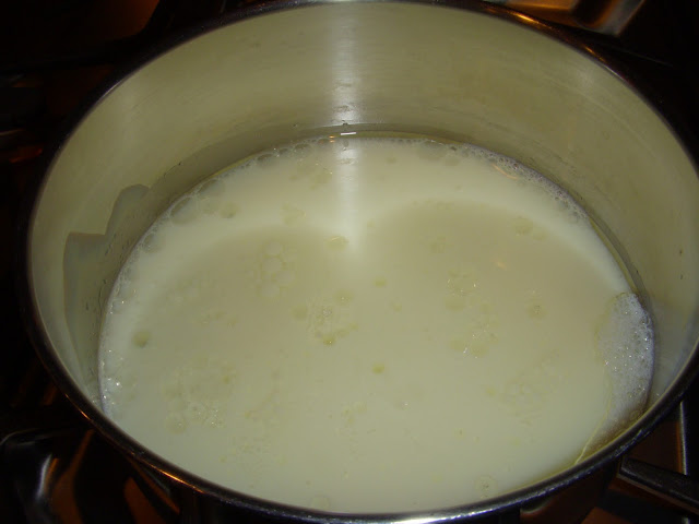 For the dough: heat milk, vegetable oil, and sugar in medium saucepan until 115-120 degrees.