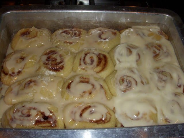 9. While the rolls are still warm, generously drizzle icing over the top.