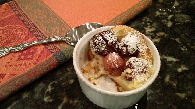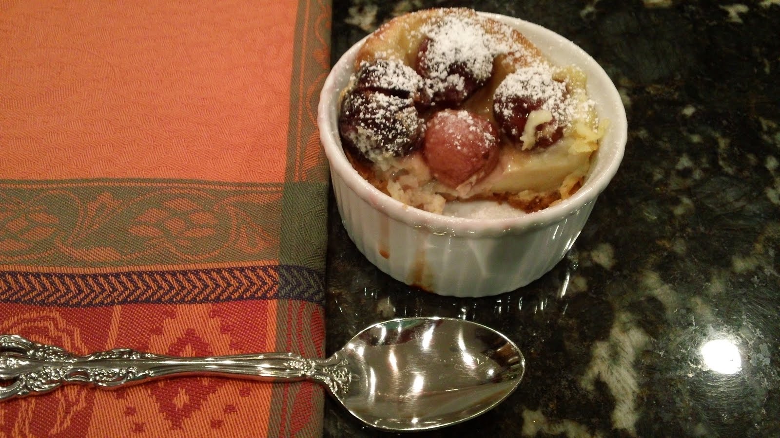 1. Preheat oven to 375 degrees F. Butter cake pan or ramekins. Arrange cherries in a single layer in pan.
