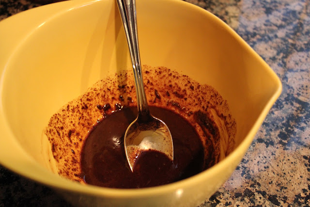 Melt semi-sweet chocolate and whipped topping for 30-40 seconds in the microwave.
